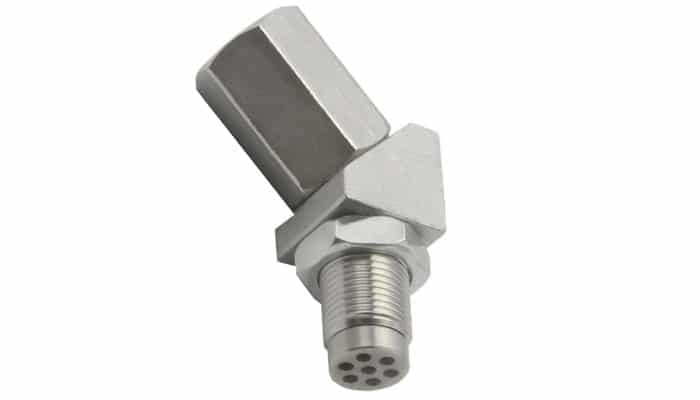 Teräksinen M18x1,5 ulko/sisä kierteellä oleva lambda anturin kulmanippa, voidaan suunnata lukitusmutterin avulla.